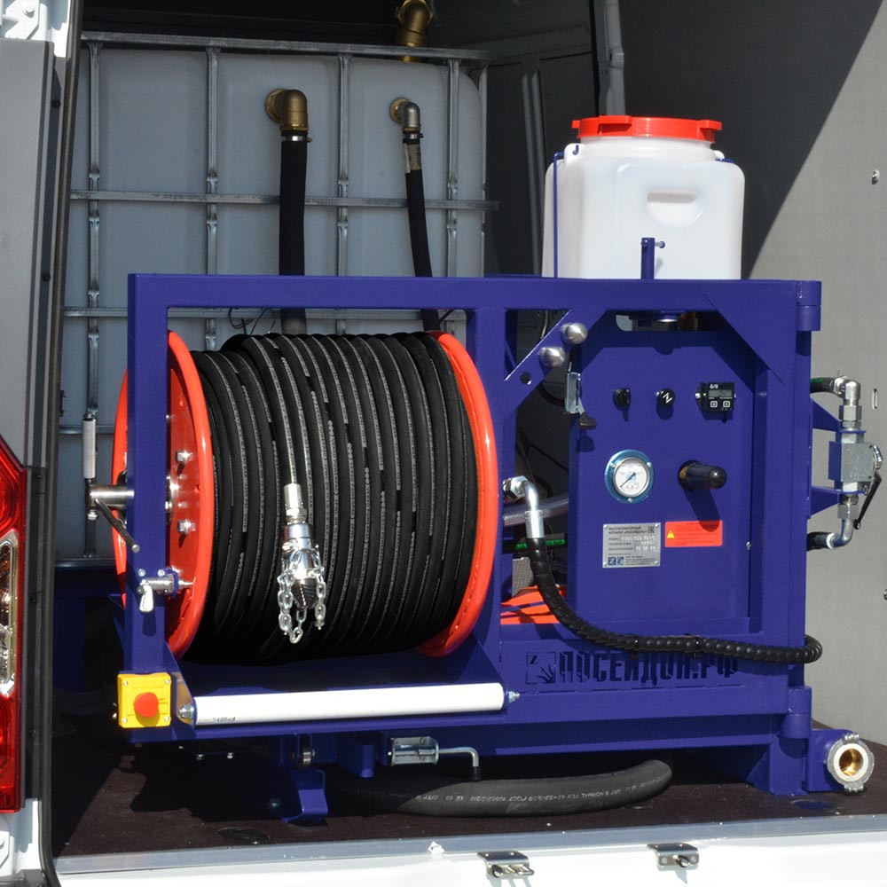 Каналопромывочный комплекс ПОСЕЙДОН B35S предназначена для очистки канализационных, ливневых и сточных труб различного назначения от осадков и засоров. Специальное оборудование каналопромывочной машины состоит из цистерны, водяного насоса с бензиновым приводом, барабана с рукавом высокого давления, гидравлической системы и вспомогательного оборудования. В комплекте 4 насадки для разных видов засоров и диаметров прочищаемых труб